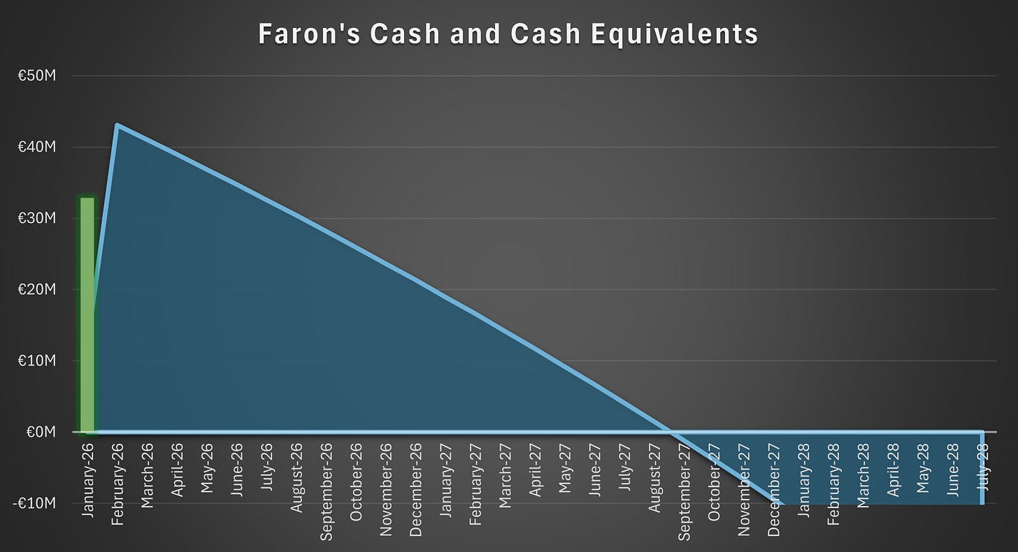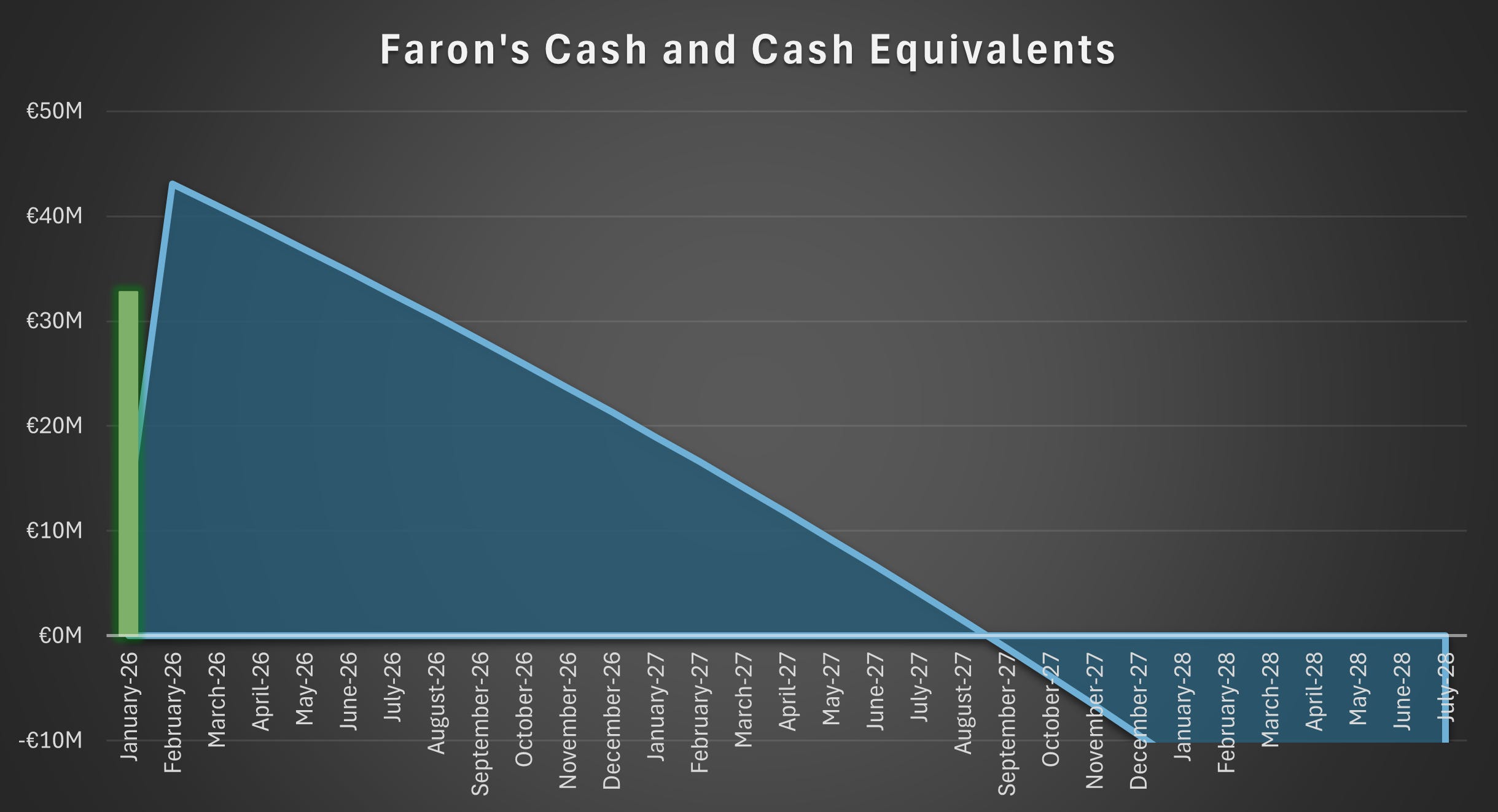 The more significant differences relate to the capital structure and the contingent claims on Faron’s equity, most notably its debt financing instruments. In 2024, Faron had an outstanding loan from IPF Partners. The loan was amortized through cash payments, but it was also the principal reason for the 2024 open offer, as the indenture required cash covenants that Faron ultimately breached. In early 2025, the loan was repaid using proceeds from the HCM loan agreement, which has been discussed extensively in our earlier articles available at rosegarden.capital. The early repayment of the IPF loan resulted in early repayment fees of €1.1 million, while the warrants issued to IPF as a sweetener remained outstanding. The terms of the HCM loan are highly predatory and are typically encountered only in financially distressed companies. Accordingly, the underlying rationale for the switch to HCM remains unclear, but the implications for investors have now become fully apparent. As of 18 March 2026, the remaining principal amount of the HCM bonds was €17.1 million and their fair value was €23 million following the conversion price reset.